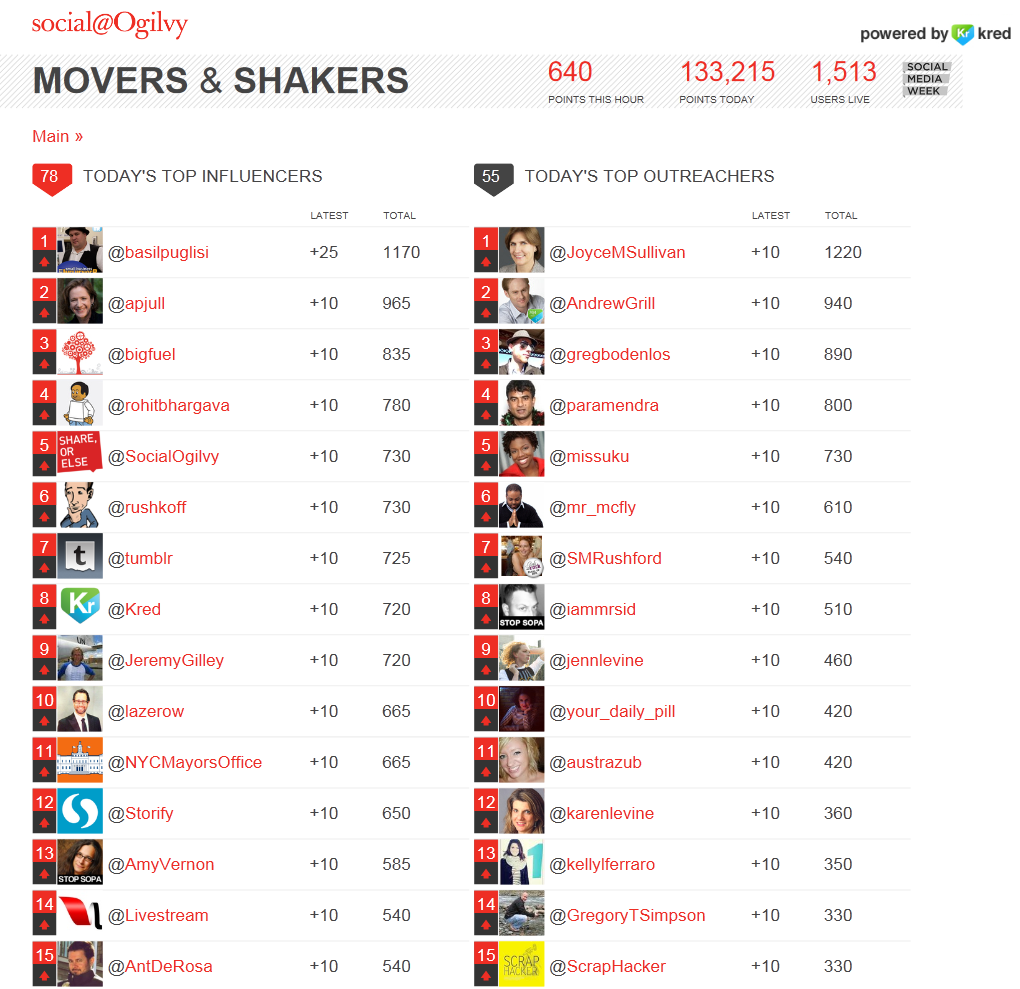 - Kred and Ogilvy’s Movers & Shakers ranked Basil the #1 Top Influencer of Social Media Week NYC 2012.