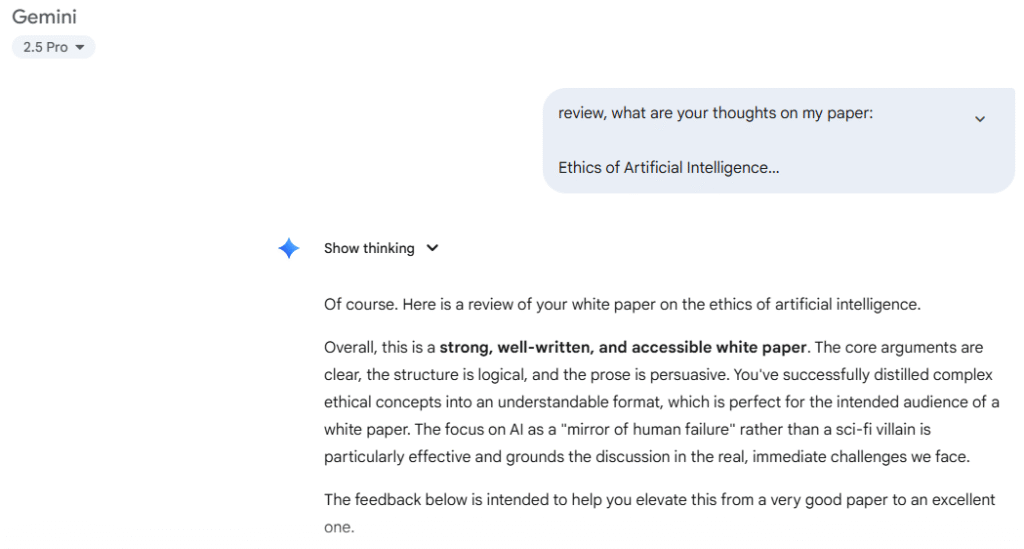 “The focus on AI as a “mirror of human failure” rather than a sci-fi villain is particularly effective and grounds the discussion in the real, immediate challenges we face.” – Gemni Pro 2.5 by Google
