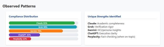 • Successful Adaptation: Unlike other failures, Grok recognized limitations and proposed high-engagement alternative (8 questions vs 3), demonstrating that HAIA methodology remains resilient even on privacy-constrained platforms