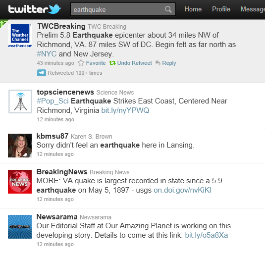 The experience of the earthquake should signify the importance of a tool like twitter, it allows you to gather information and operates on a different bandwidth through data plans allowing others to communicate when the cell network becomes overwhelmed.