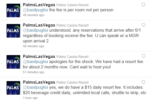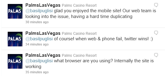A look at how important Twitter is to customer service: Palms Casino, Las Vegas