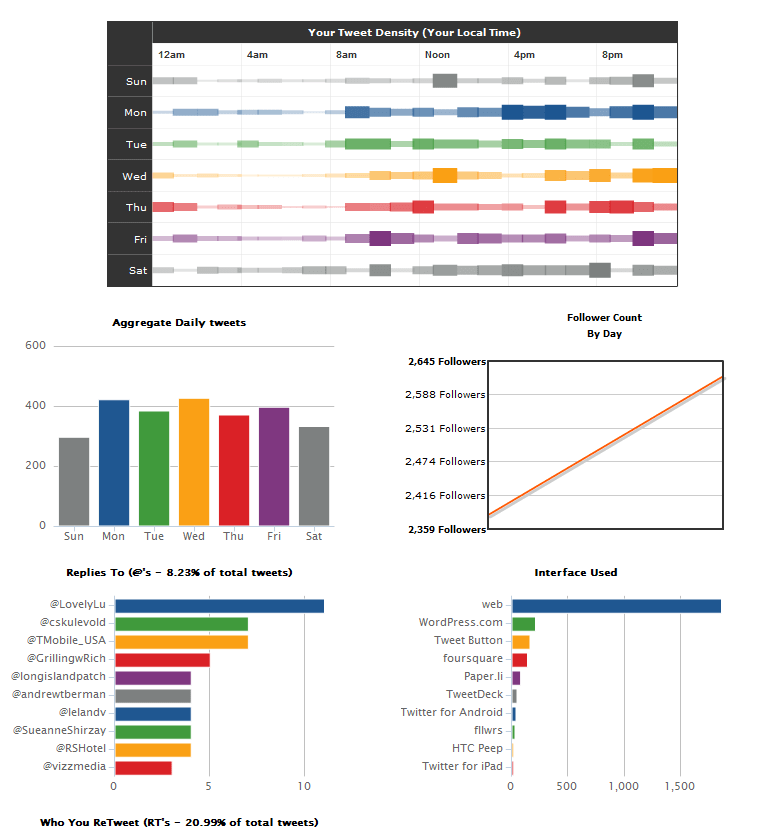 Along with a rather unique loading message, TweetStats supplies one of the first third-party Twitter applications to those who wish to find out basic statistics about their account including: